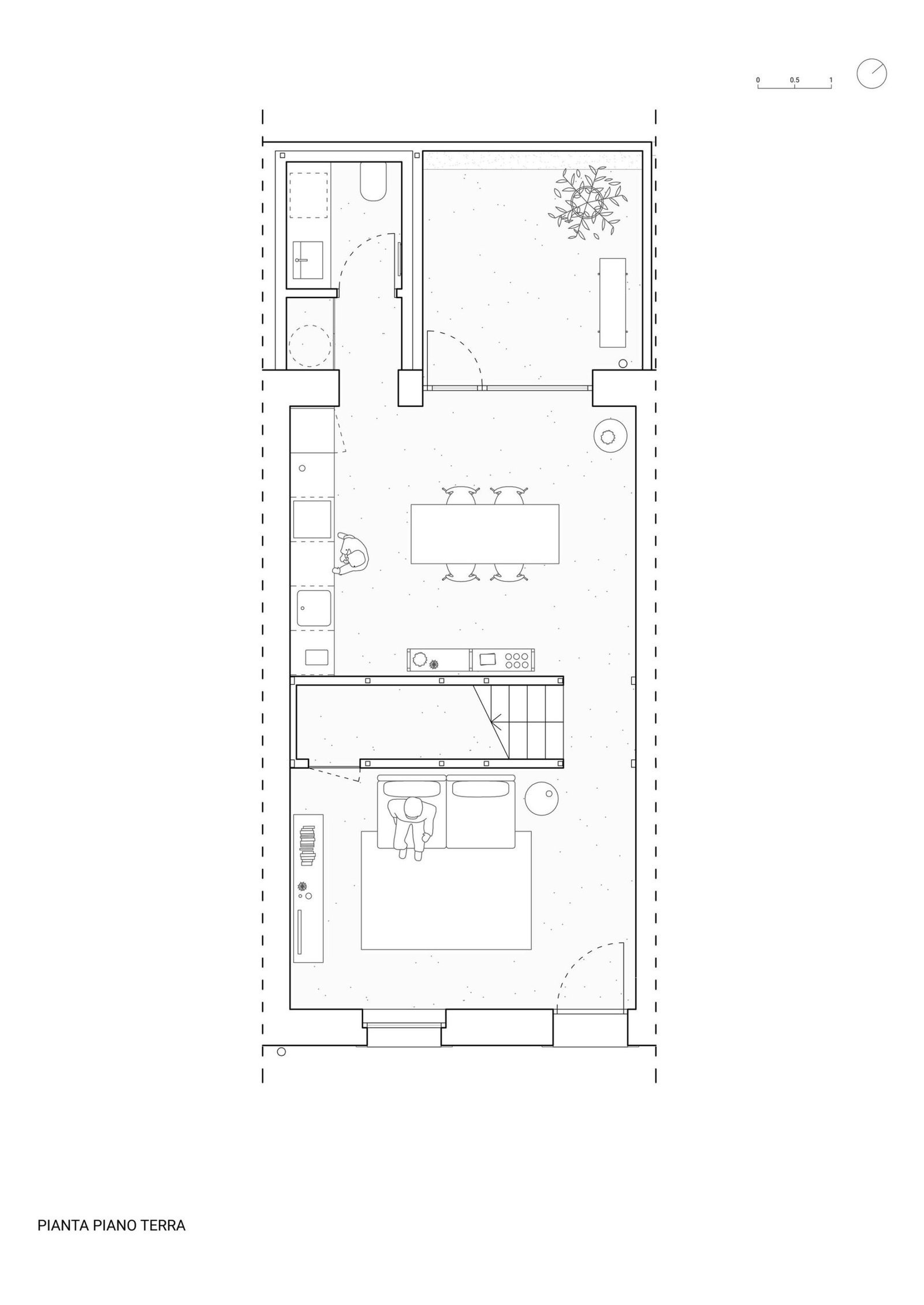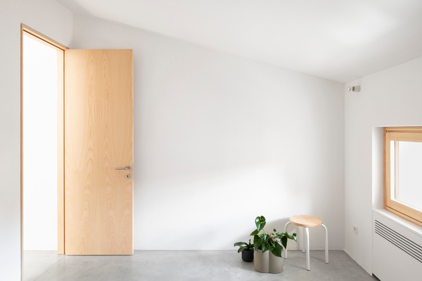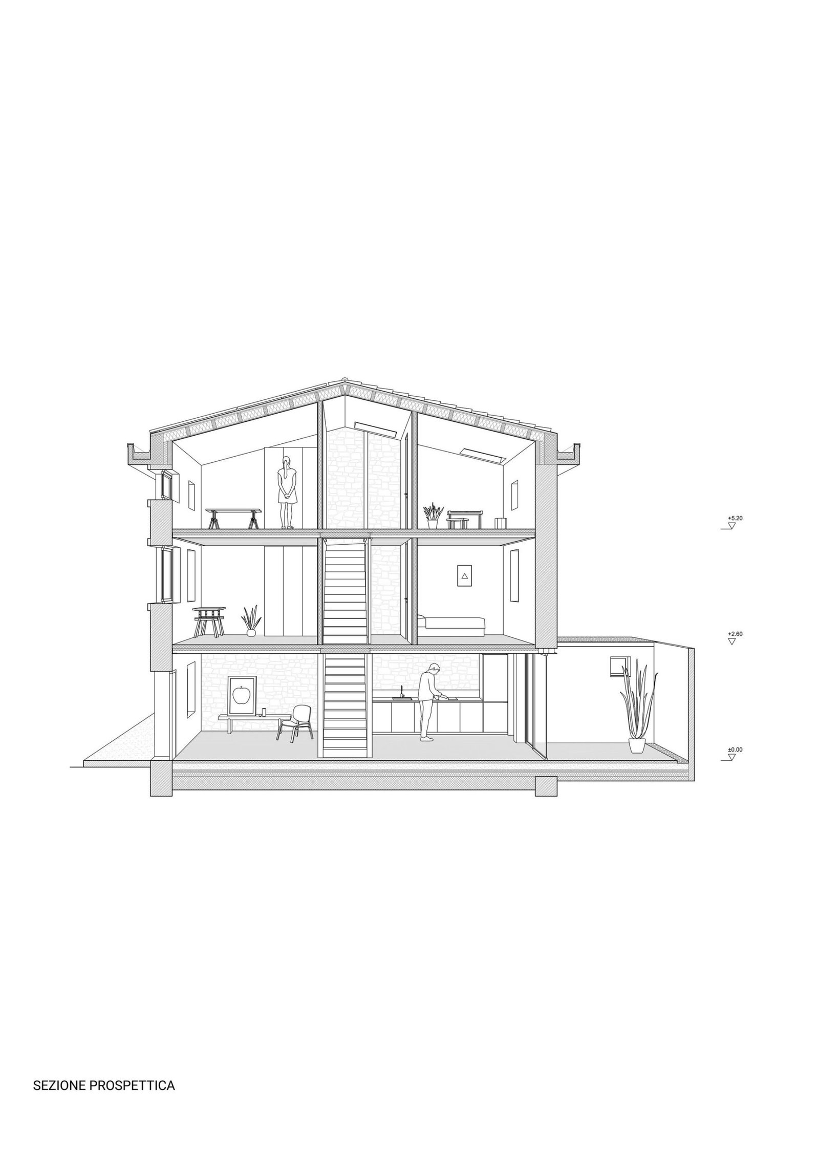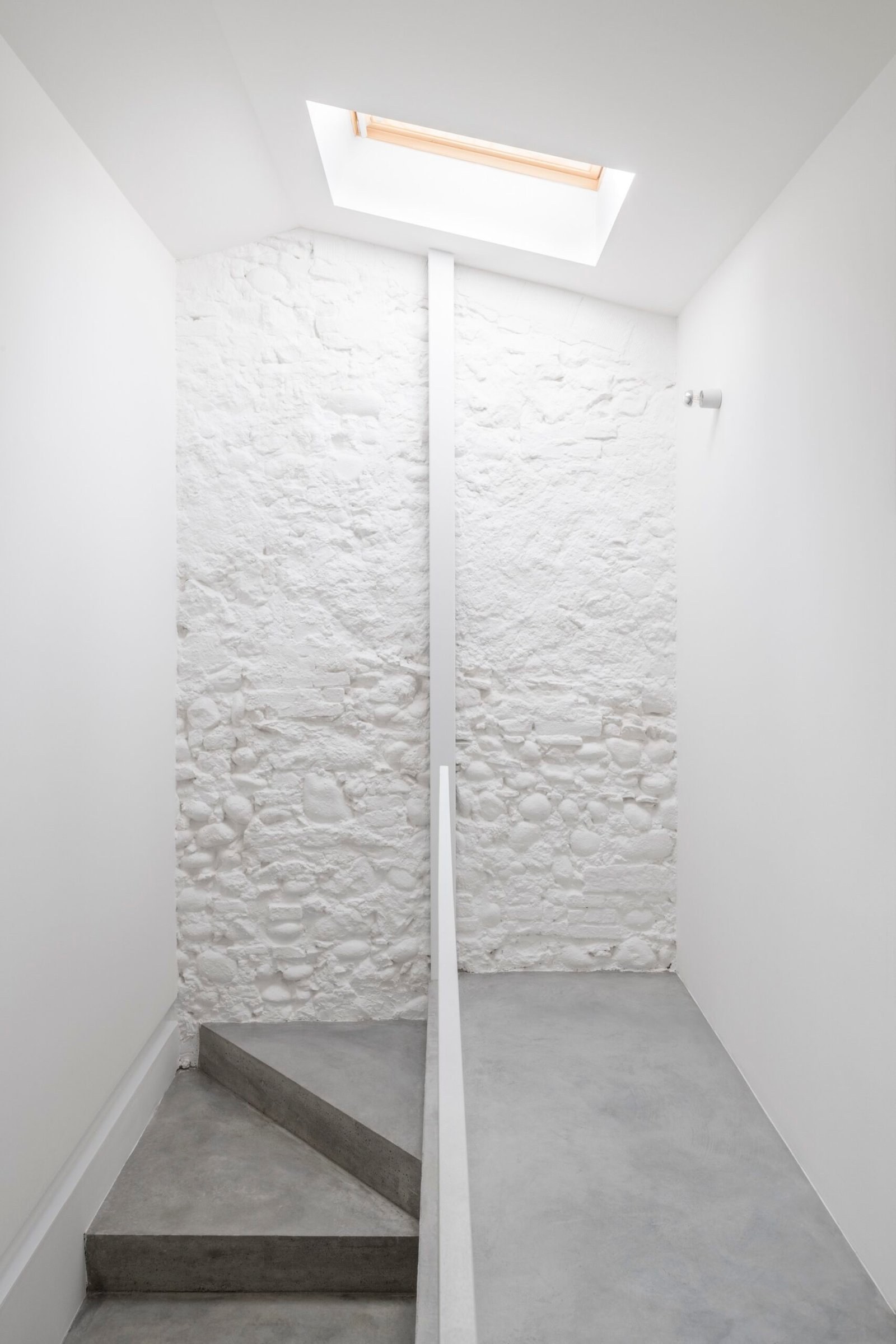 En las zonas comunes, las texturas vistas de los muros de piedra originales realzan el carácter histórico del edificio. La planta baja se utiliza como espacio común, con sala de estar, cocina y un pequeño patio exterior. Las dos plantas superiores se dedican a zonas privadas, incluyendo dormitorios y baños.