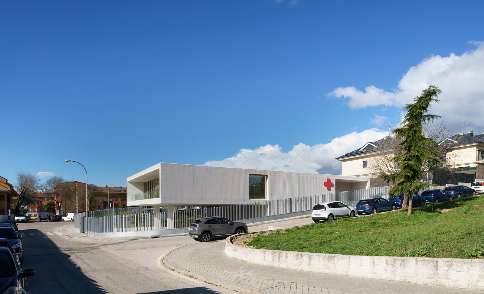 La parcela para la nueva sede de Cruz Roja en Colmenar Viejo (Madrid), al norte de la región, es el remate de un conjunto de viviendas unifamiliares pareadas.