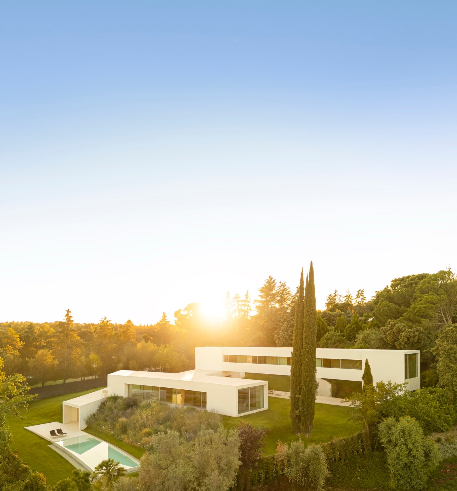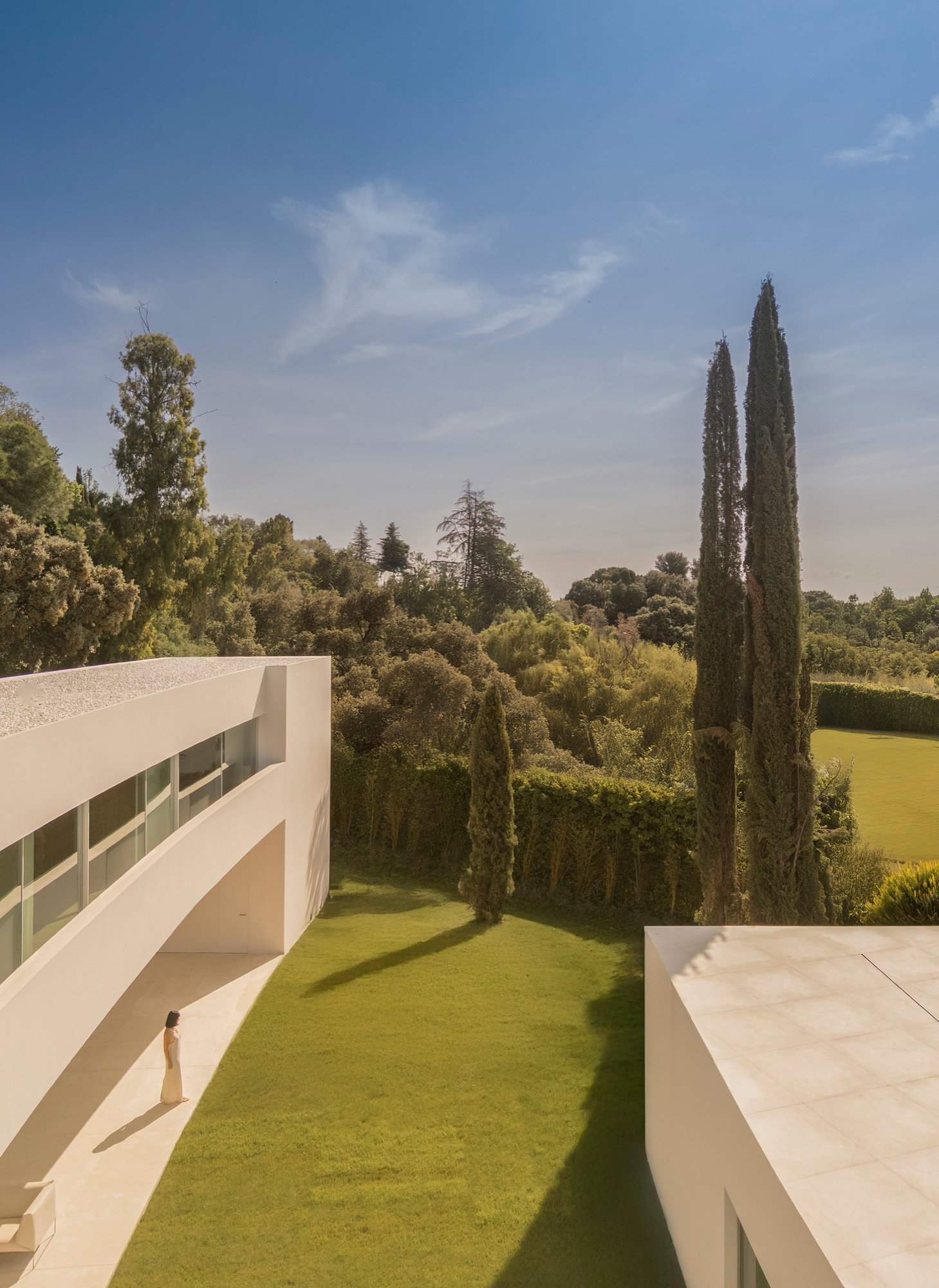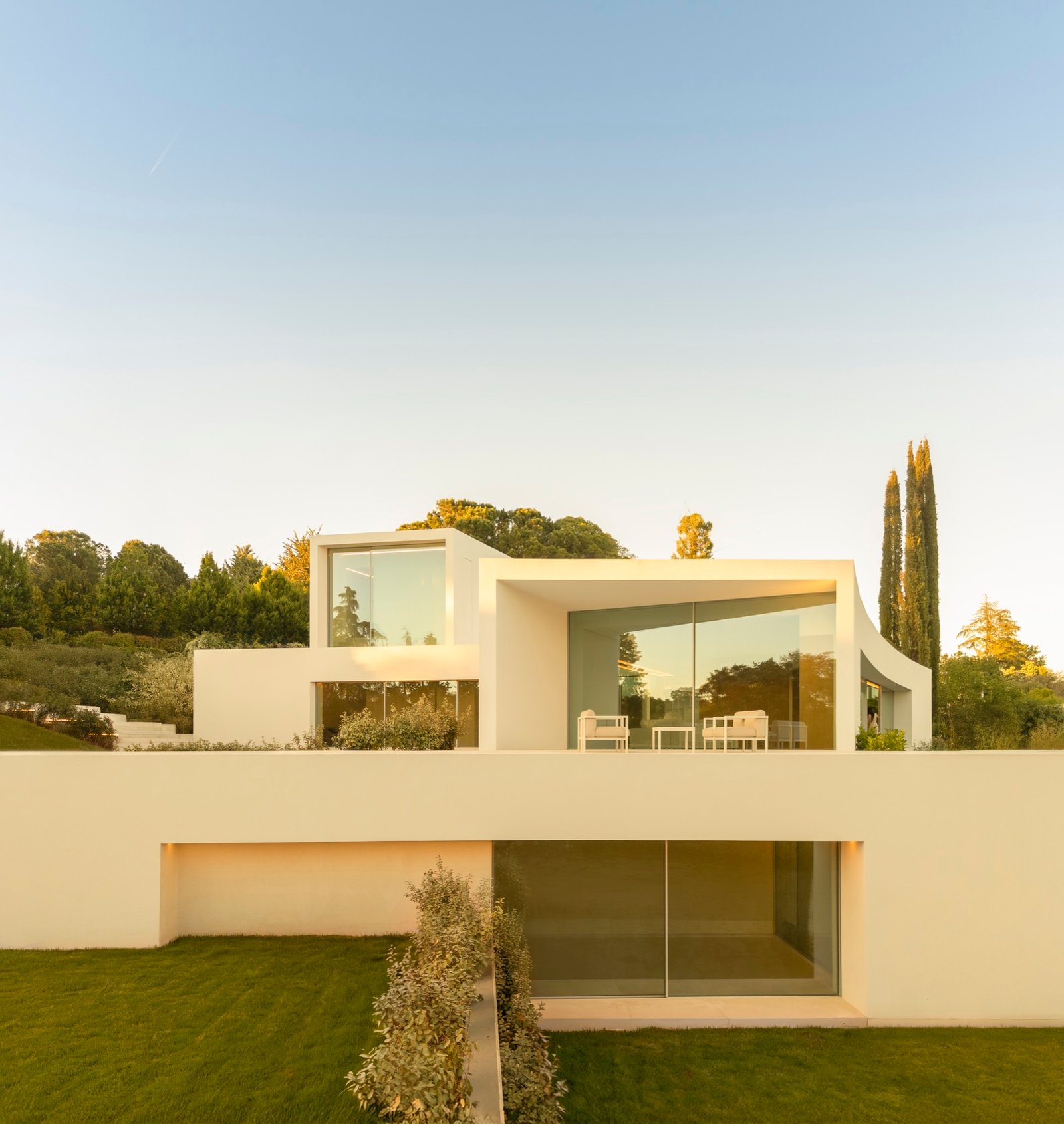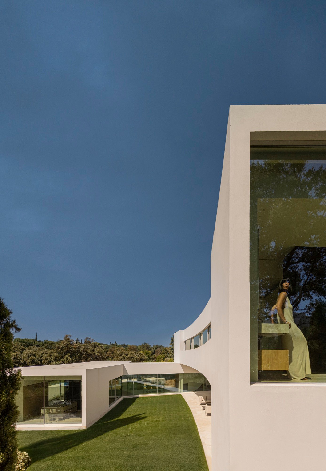Se propone una arquitectura que se entrelace con el jardín, ampliando al máximo el perímetro de contacto con el paisaje y diluyendo los límites entre lo construido y lo natural. En este enclave de Madrid, esa relación con el entorno adquiere un valor singular.