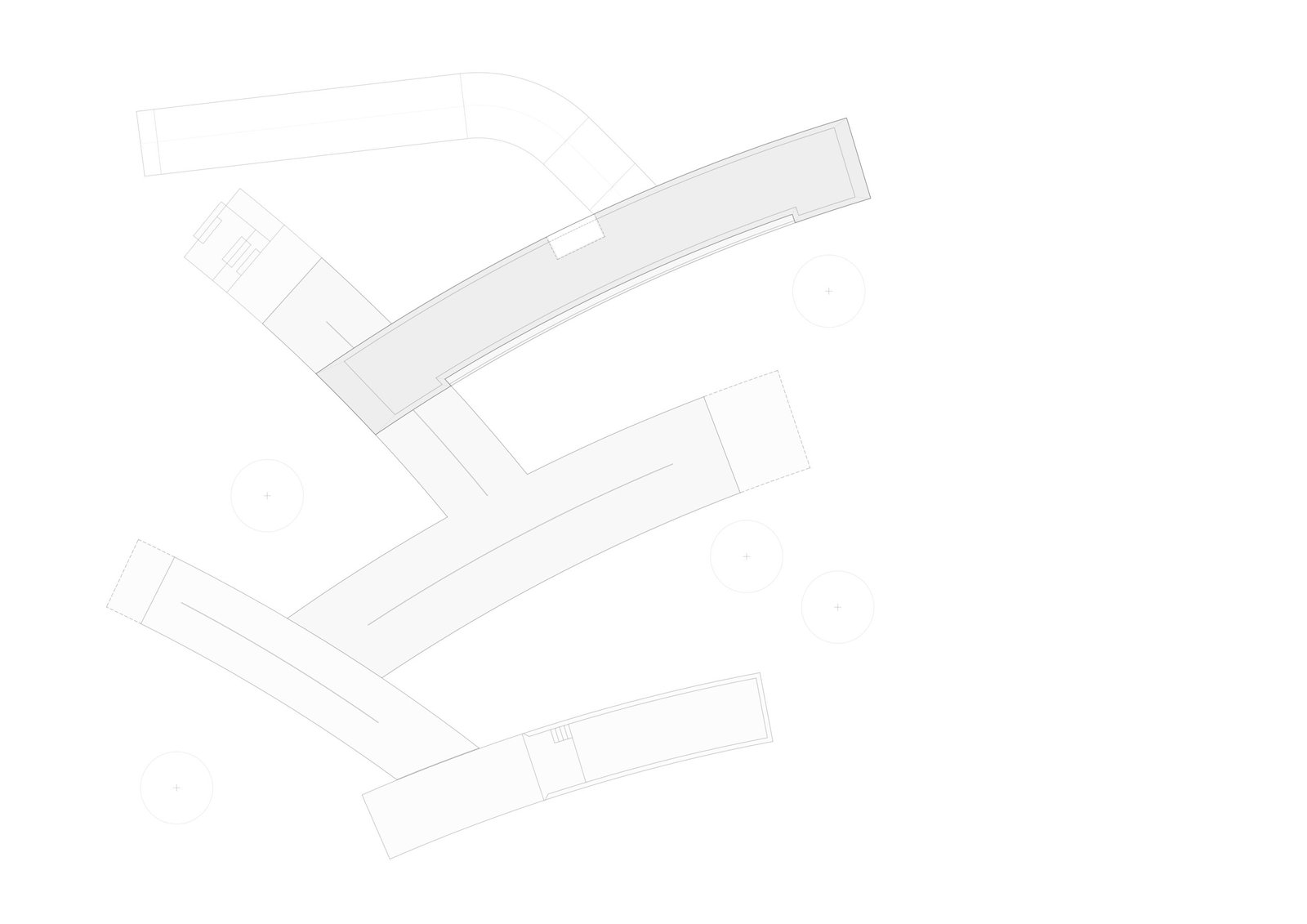 El proyecto combina dos arquetipos ancestrales: el pabellón, entendido como un espacio abierto y centrífugo; y el patio, concebido como un ámbito más recogido y descubierto. Siempre nos fascinó la relación con el exterior en algunos proyectos de plantas alargadas de la obra de Glenn Murcutt y Stephane Beel, entre otros. Las piezas se configuran como elementos longitudinales y pasantes, obtenidos mediante un radio de gran dimensión.
