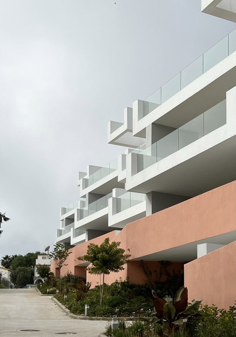 En el clima mediterráneo, los espacios exteriores constituyen una ampliación natural de la vivienda durante la mayor parte del año. Con el fin de generar espacios de terraza descubierta y soleada en cada una de las viviendas, los forjados de las distintas plantas vuelan en diferentes direcciones, siempre con luces inferiores a 1,80 metros, y sin alterar el diseño de la estructura vertical, lo que permite utilizar estructuras sencillas y económicas a pesar de la aparente complejidad espacial.