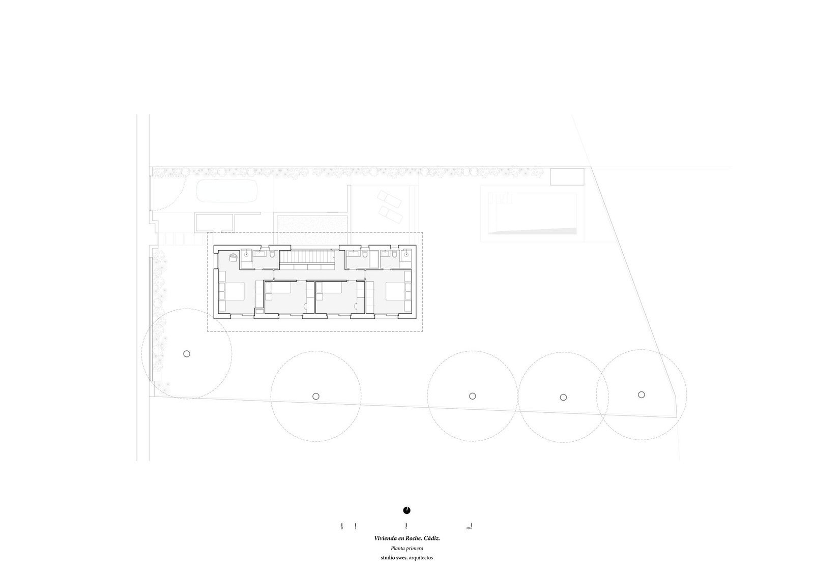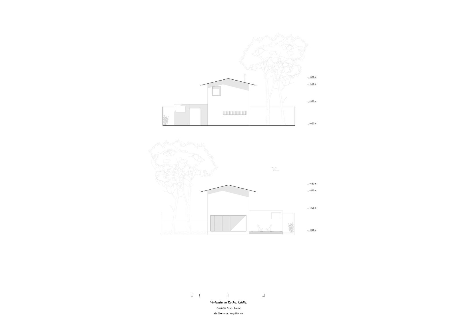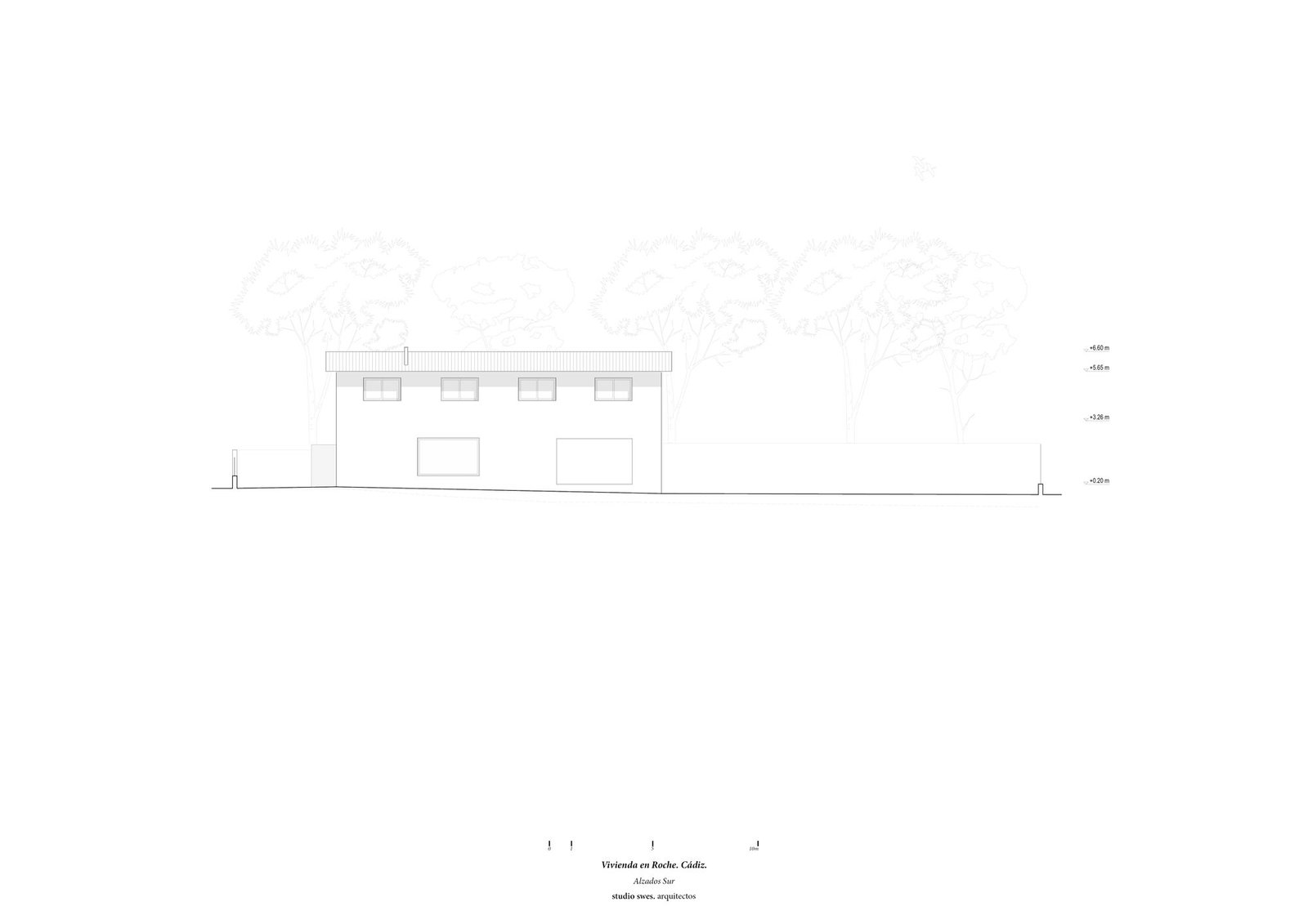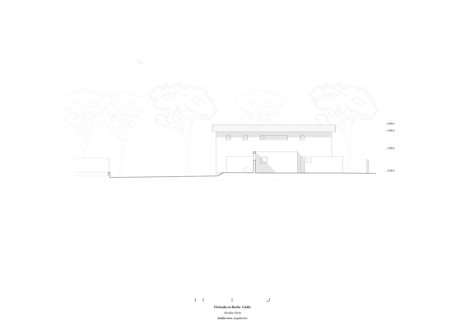 La vivienda consta de una nave principal a la que se adosan una serie de volúmenes de una sola planta. Esta disposición responde a la normativa que exige que la planta baja supere en un 30% la superficie de la planta superior. Estos cuerpos anexos, que también pueden adosarse a los límites de la propiedad según la normativa, albergan usos auxiliares: trastero, patio de secado, zona de servicios… Formalmente, funcionan como una suerte de extensión barroca proyectada desde una obra principal más austera.