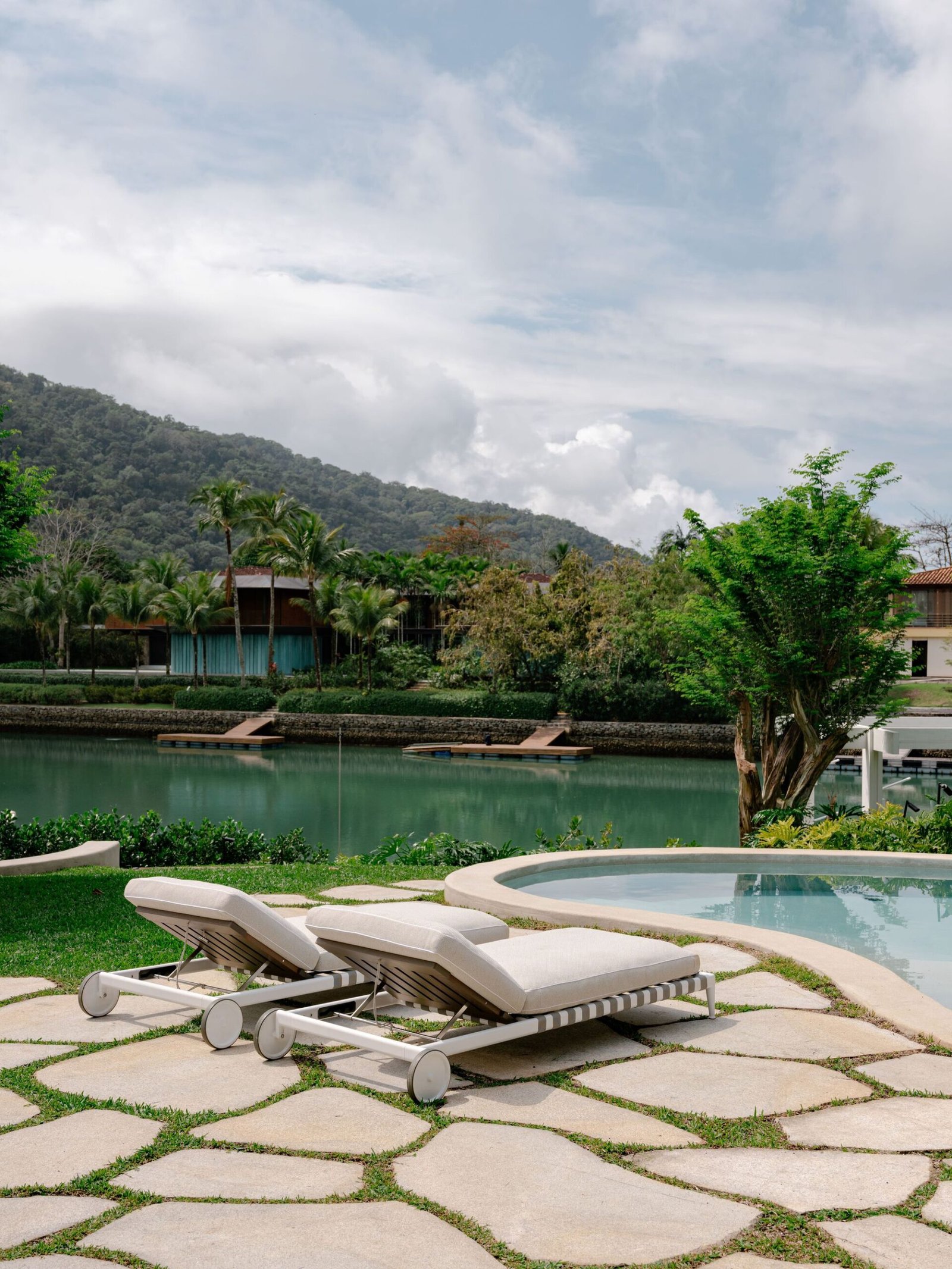 Localizada en un lote estándar con vista directa al canal, Casa Laranjeiras fue concebida a partir de la relación entre contención volumétrica y ligereza espacial. Con aproximadamente 450 m² y cuatro suites, el proyecto maneja un programa denso sin comprometer la fluidez o la luminosidad de los ambientes.